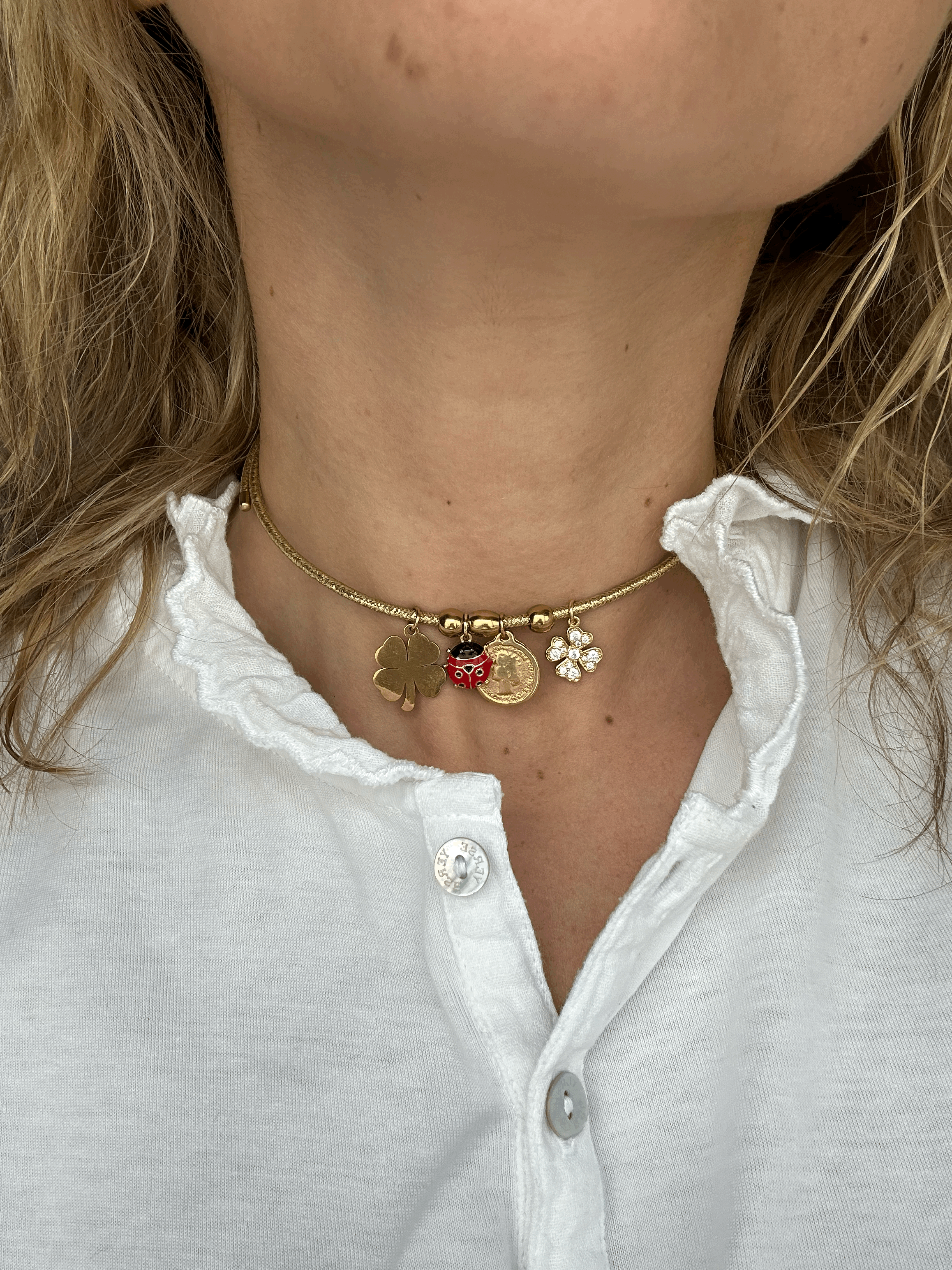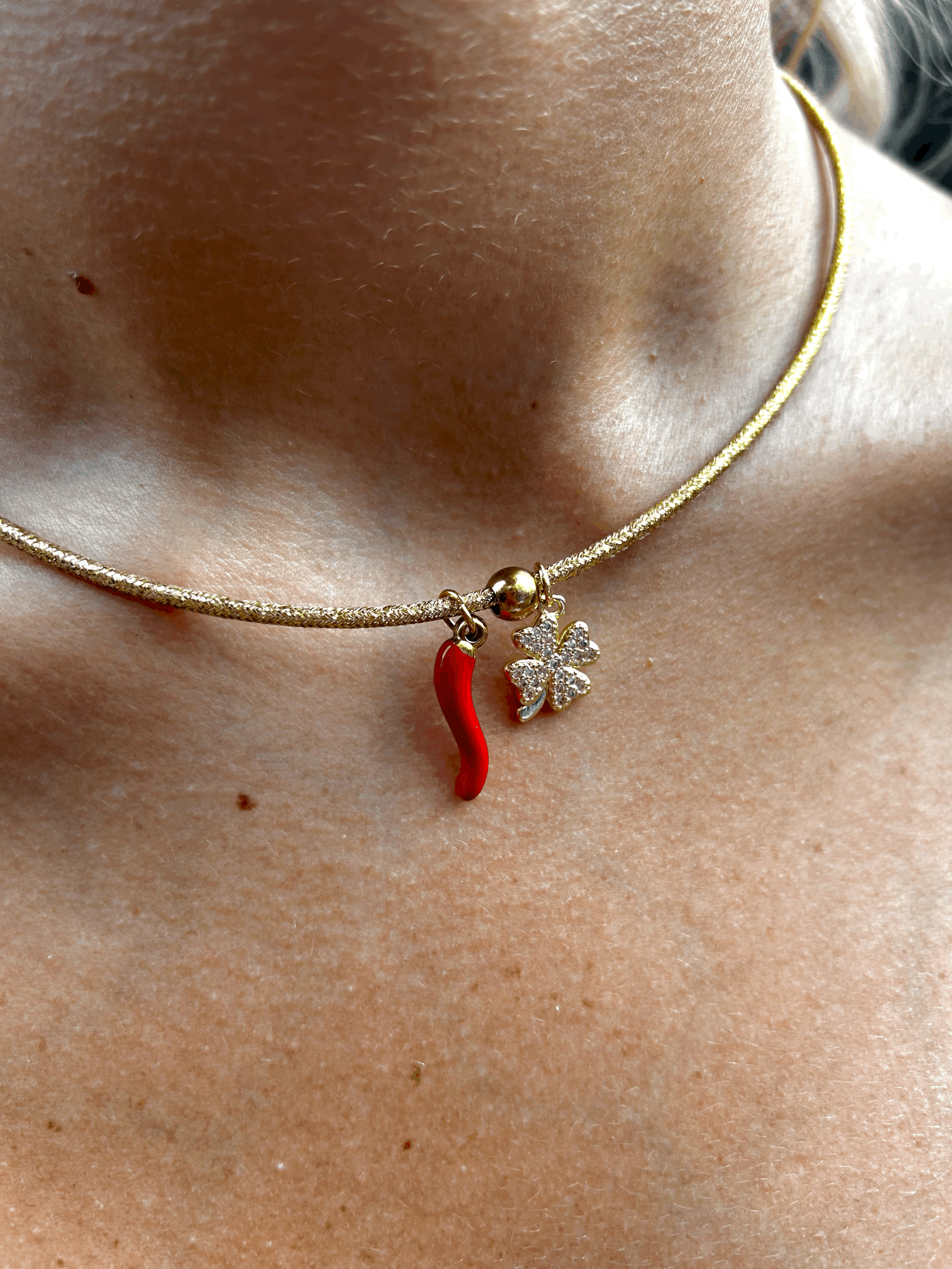 Eβ la collana piΓΉ pazza che ci sia. Filo di tessuto magnetico e ciondoli in acciaio inox, con zirconi o smaltati, pronti ad essere cambiati come cambi idea.