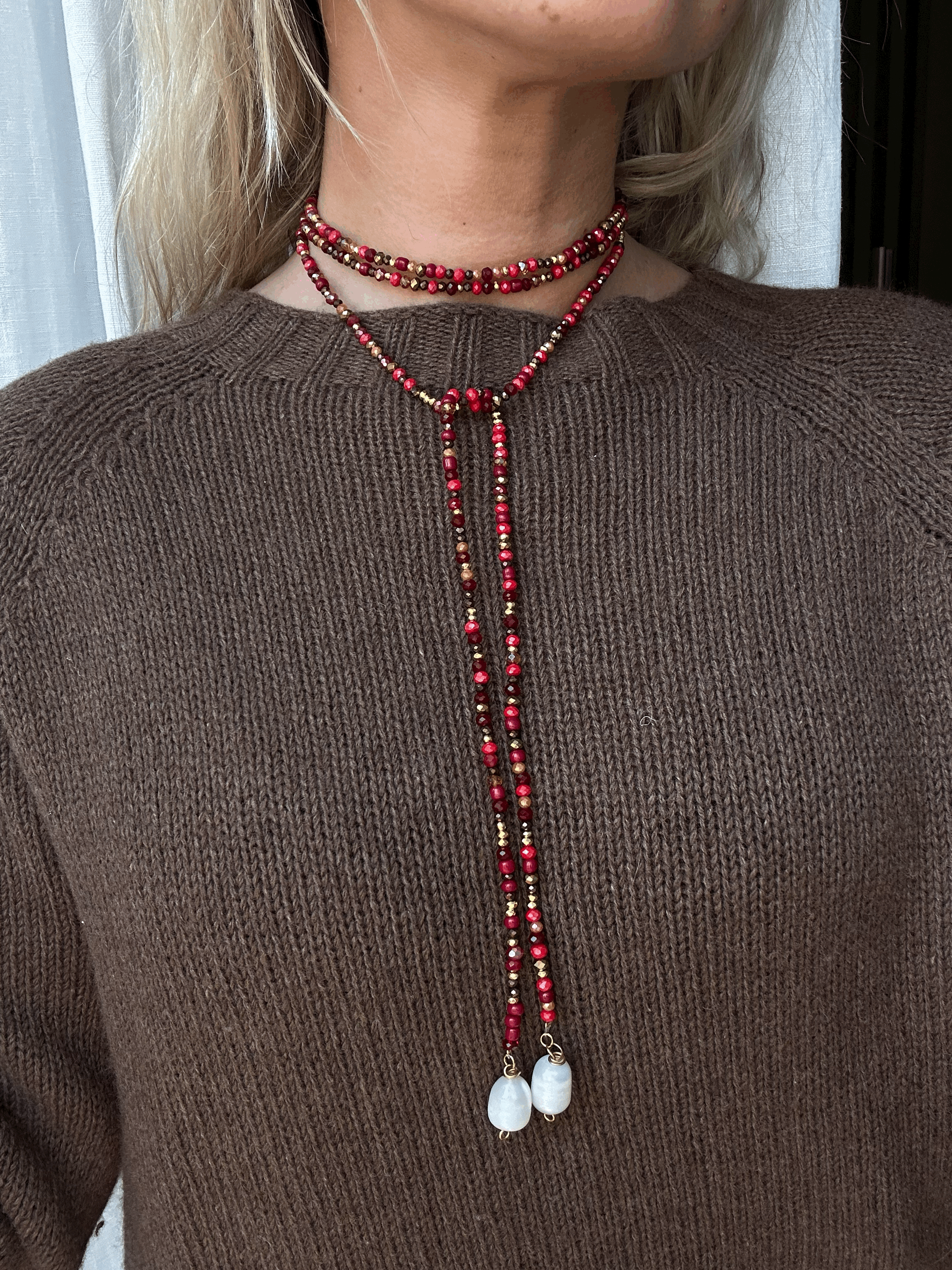 Proprio come un piatto di spaghetti: si arrotola, si intreccia, si gira e sta sempre bene. La indossi lunga, doppia, annodata o a girocollo.